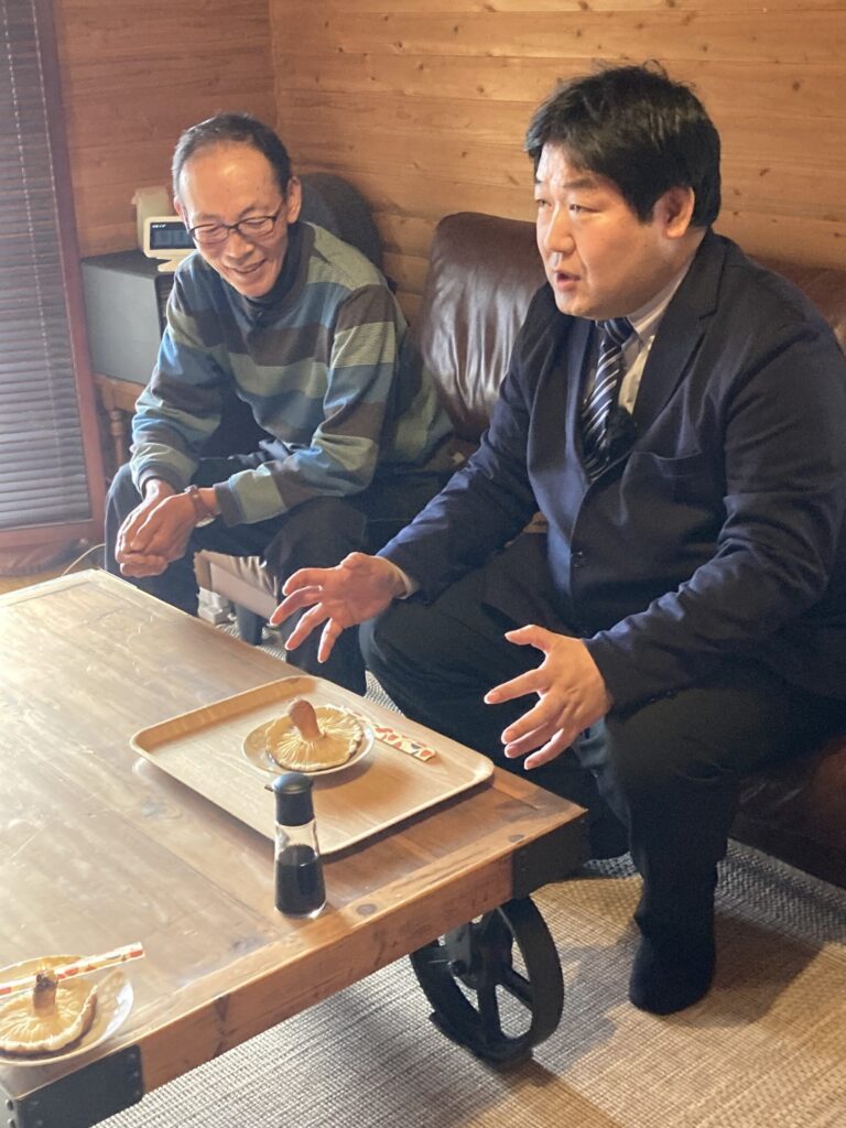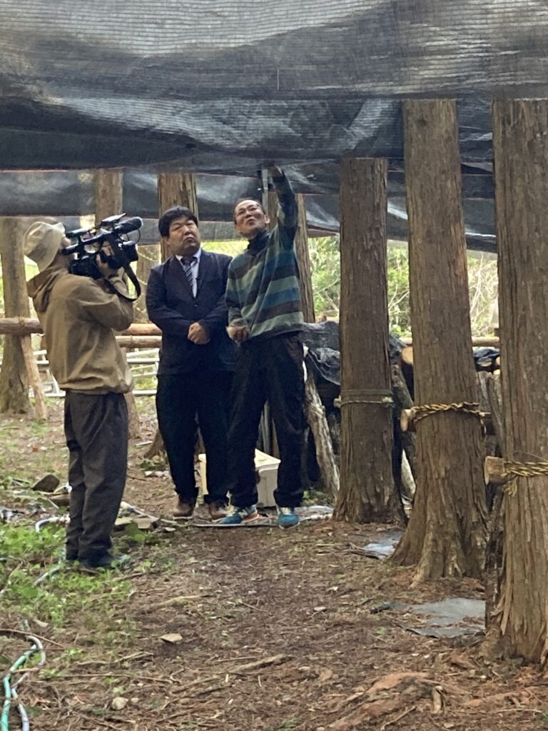原木椎茸の栽培について現場でご説明をさせていただきました。特に思い、今後の展望、具体的な拘り抜いた独自栽培方法等についてもご説明いたしました。